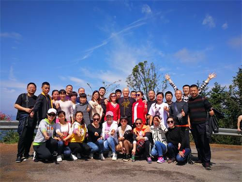 登高遠(yuǎn)眺,是無(wú)與倫比的美麗,像是人間仙境,山上的霧氣時(shí)升時(shí)降,所有的美景盡收眼底,天空格外的藍(lán),飛機(jī)飛過(guò)時(shí),又感覺(jué)觸手及可了。在歡快的合影后,準(zhǔn)備下山了,大家手牽著手,齊聲歡唱“團(tuán)結(jié)就是力量,團(tuán)結(jié)就是力量,這力量是鐵,這力量是鋼……”一路歌聲,一路歡笑,一路汗水,一路幸福!